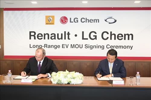 The French automaker, which controls Renault-Nissan Alliance and South Korea’s Renault Samsung Motors Co., said the agreement lays the foundation for its next-generation EVs to be powered by lithium ion batteries made by LG Chem, already an established leader in the vehicle power storage sector. The batteries will give cars longer endurance and reduce range concerns that have restricted growth of the global EV market.