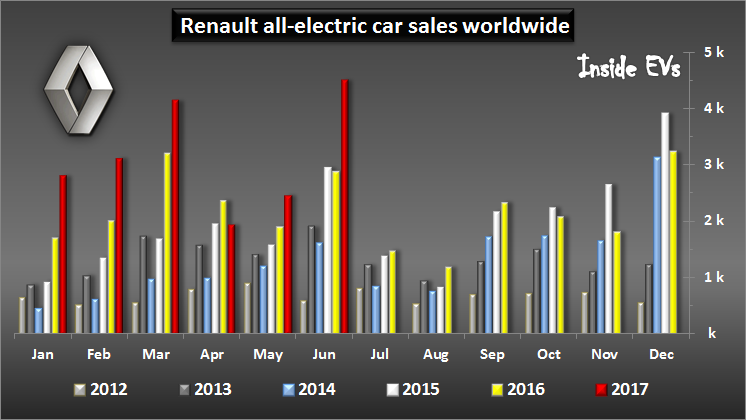 For the Renault brand, EVs (not including the city Twizy) stand at 1.65% share of all sales in June, and 1.4% for the first half of 2017.